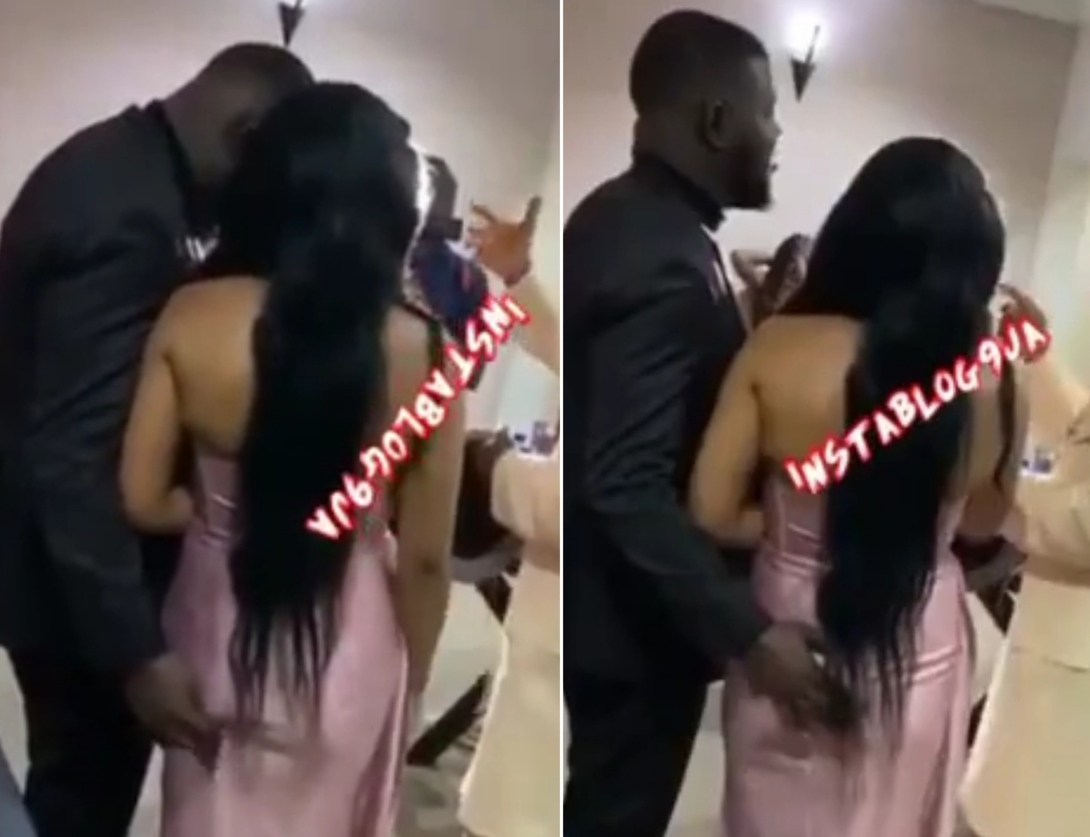 During the wedding, the husband to the bride, Babajide Olatilo was caught on camera pressing his wife's backside during a prayer session.